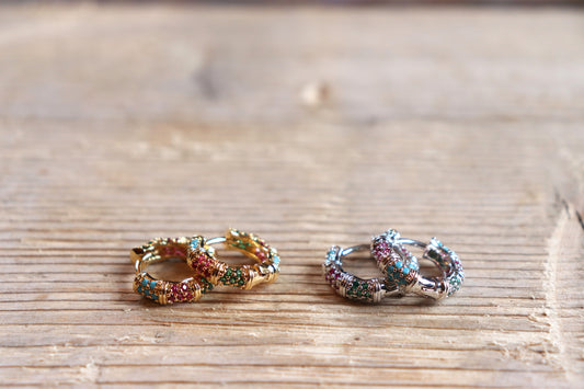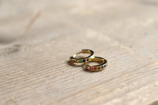 18K Gold Plated Huggies With Coloured Micro Pave Cubic Zirconia