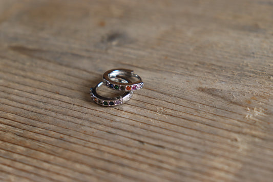Platinum Plated Huggies With Coloured Micro Pave Cubic Zirconia